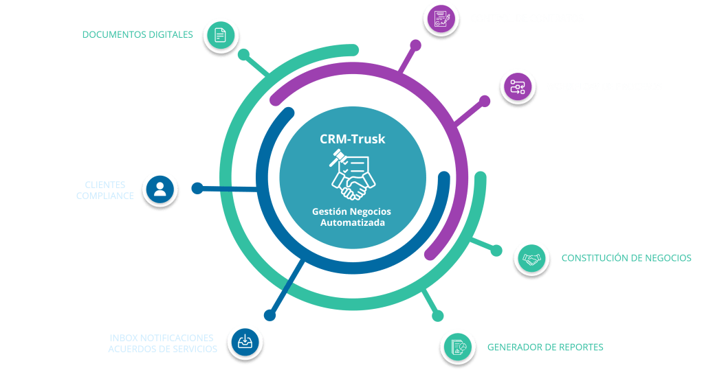 CRM-TRUSK es una poderosa herramienta que permite la automatización del control y seguimiento de toda la gestión de negocios. Comenzado por el registro automatizado de clientes potenciales hasta la constitución o suscripción de contratos.